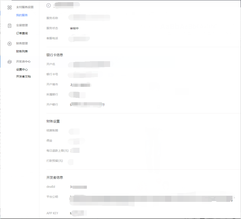 在开发者信息 可以获取到dealid、平台公钥、APP KEY